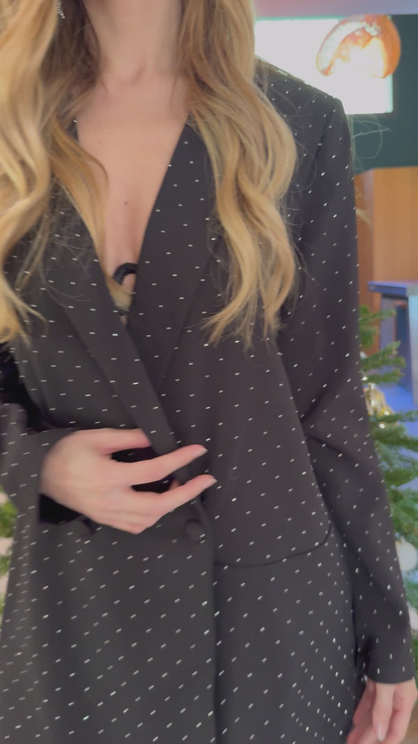 Notre combi-short BILBOA noire , inspirée du vestiare masculin, est parfaite pour suivre la tendance workwear avec panache. Avec ses épaules larges, elle mettra en valeur votre silhouette. On note aussi sa multitude de strass qui rendra votre absolument shinny